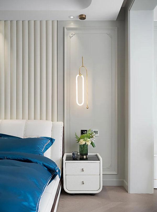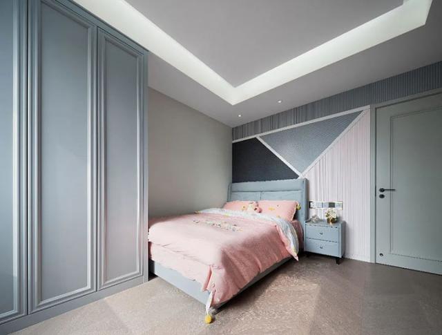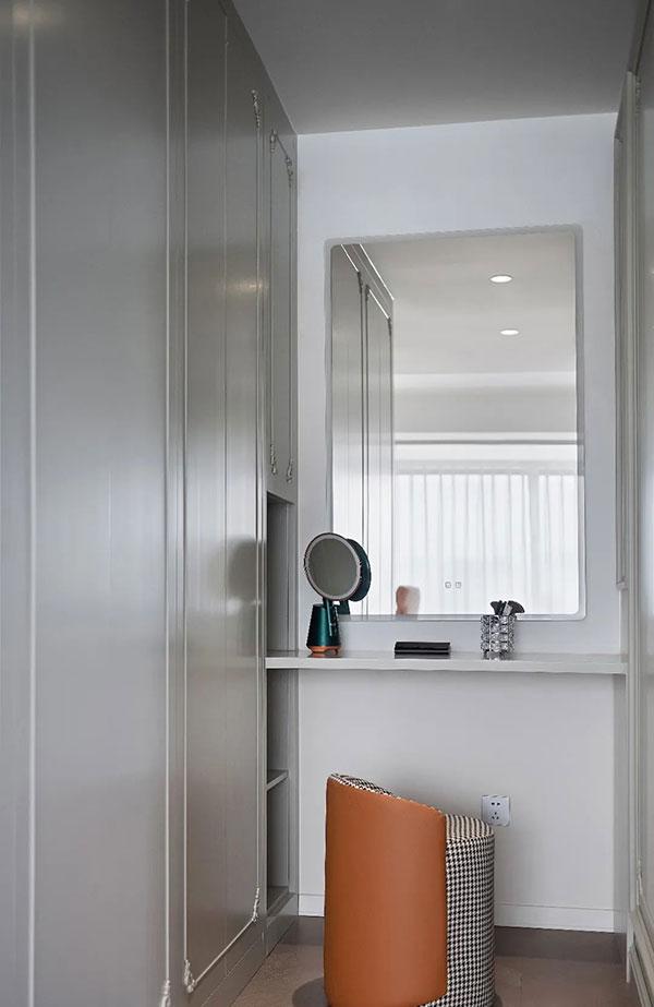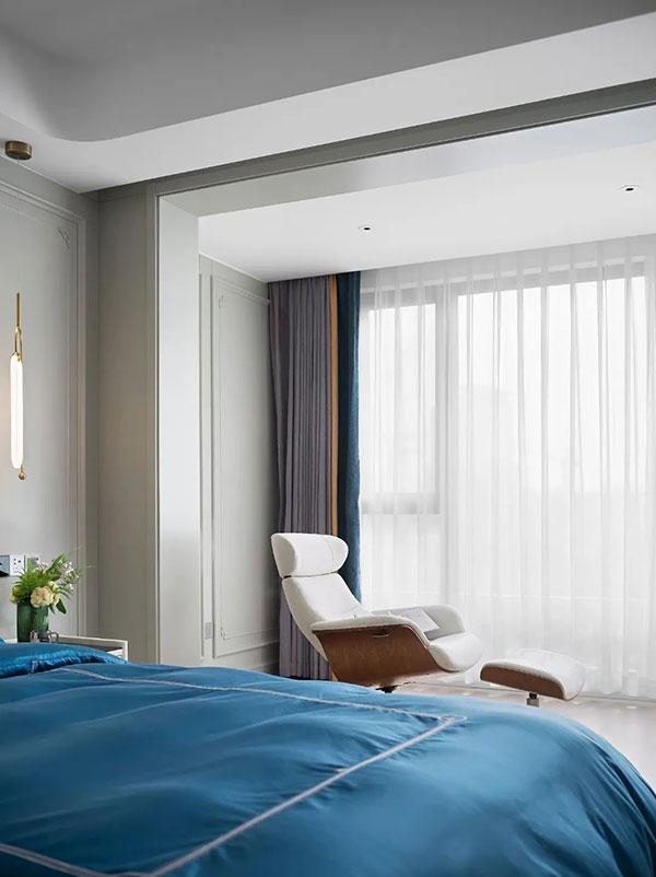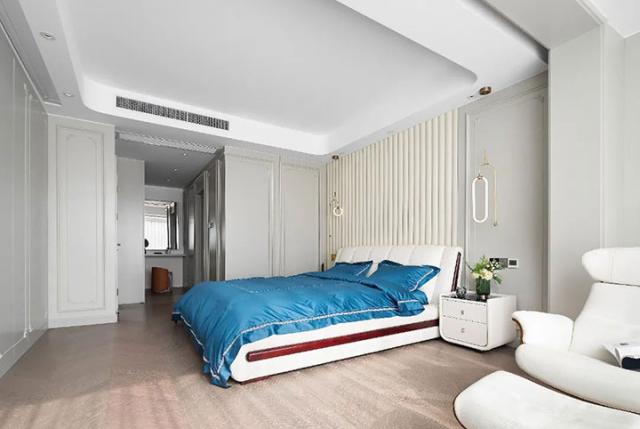 主卧主要呈现淡雅宁静的氛围,打造舒适柔和的睡眠空间,在了解屋主起居习惯后,设置梳妆护肤区、更衣区、按摩休憩区等功能区域,满足屋主日常需求。