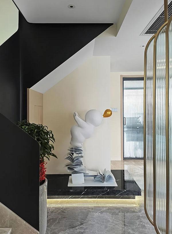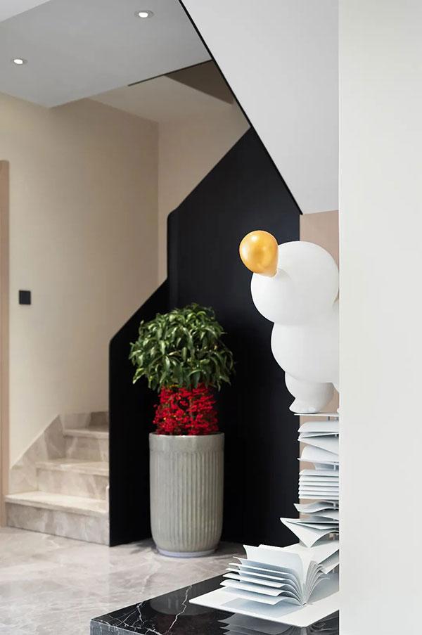 生活需要乐趣,我们便筑造乐趣。在满足各功能区条件后,如何让空间更富有生命力,根据主人的喜好,我们在定格整体风格后,大胆尝试了艺术装置的融入,在角落、楼梯间...创造乐趣。