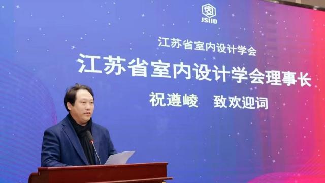 会议伊始,江苏省室内设计学会理事长祝遵崚致欢迎辞。他回顾了学会在过去一年中顺利完成换届、稳步推进制度建设、深化会员服务、加强学术交流等方面取得的积极成效,并对第三届理事会及徐雷理事长的辛勤付出表示崇高敬意。他表示,新一届理事会将以制度建设为抓手,以服务会员为核心,持续推动学会规范化运行与行业高质量发展。