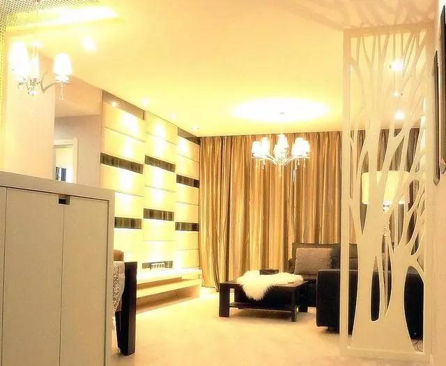 电视背景墙,采用的软包加镜面的设计,时尚大气,尤其是在灯光效果下,非常的漂亮;