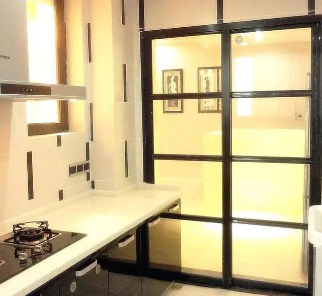 最满意的是厨房采用的黑框方格玻璃滑门,耐脏易清洁,价格也还是比较实惠的;
