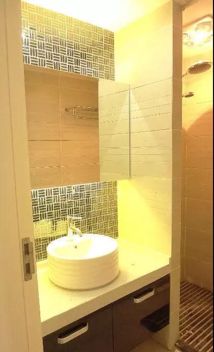 洗漱台,安装在卫生间的外面,做到了干区的彻底分离,也方便了日常的梳洗清洁,整体效果也是简单时尚;
