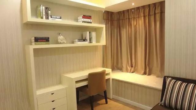 另一侧墙面则是设计的一体式书柜,给孩子提供了一个学习的场所,都是木工现场定制的,造型简易,但实用性不错;
