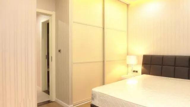 主卧,泰州装修风格保持了一致,墙面同样选择的壁纸作为装饰,效果清新舒适,定制的衣柜,款式新颖大方,嵌入式的设计也节省了空间,符合小户型的需求,效果不错。